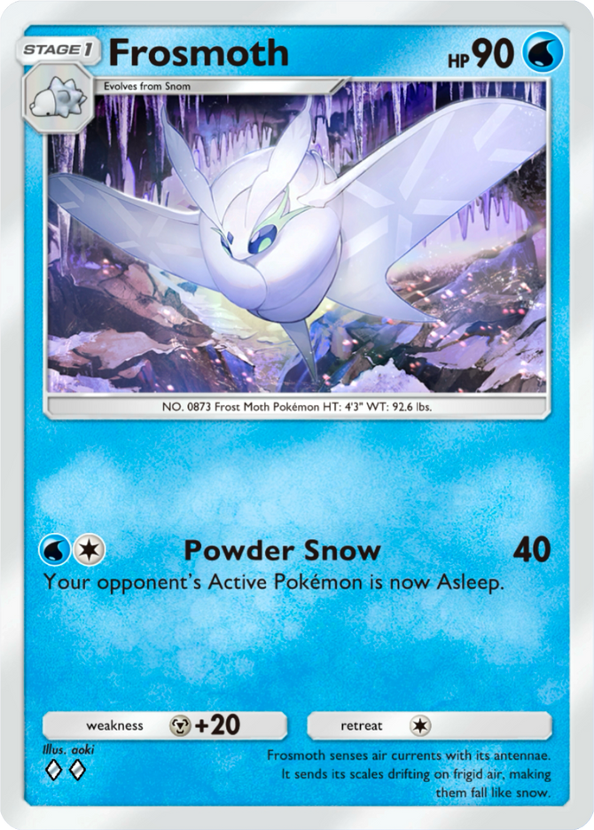 Frosmoth senses air currents with its antennae. It sends its scales drifting on frigid air, making them fall like snow.