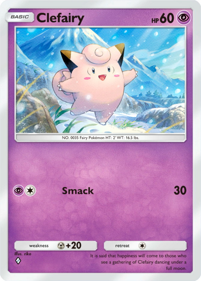 It is said that happiness will come to those who see a gathering of Clefairy dancing under a full moon.