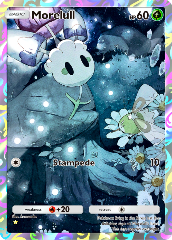 Pokémon living in the forest eat the delicious caps on Morelull’s head. The caps regrow overnight.