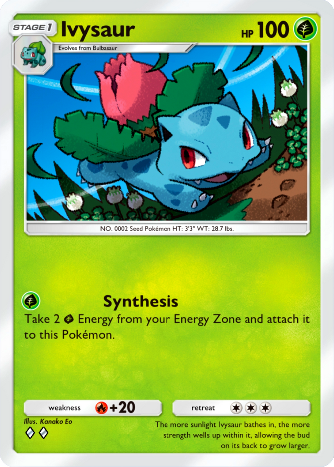 The more sunlight Ivysaur bathes in, the more strength wells up within it, allowing the bud on its back to grow larger.